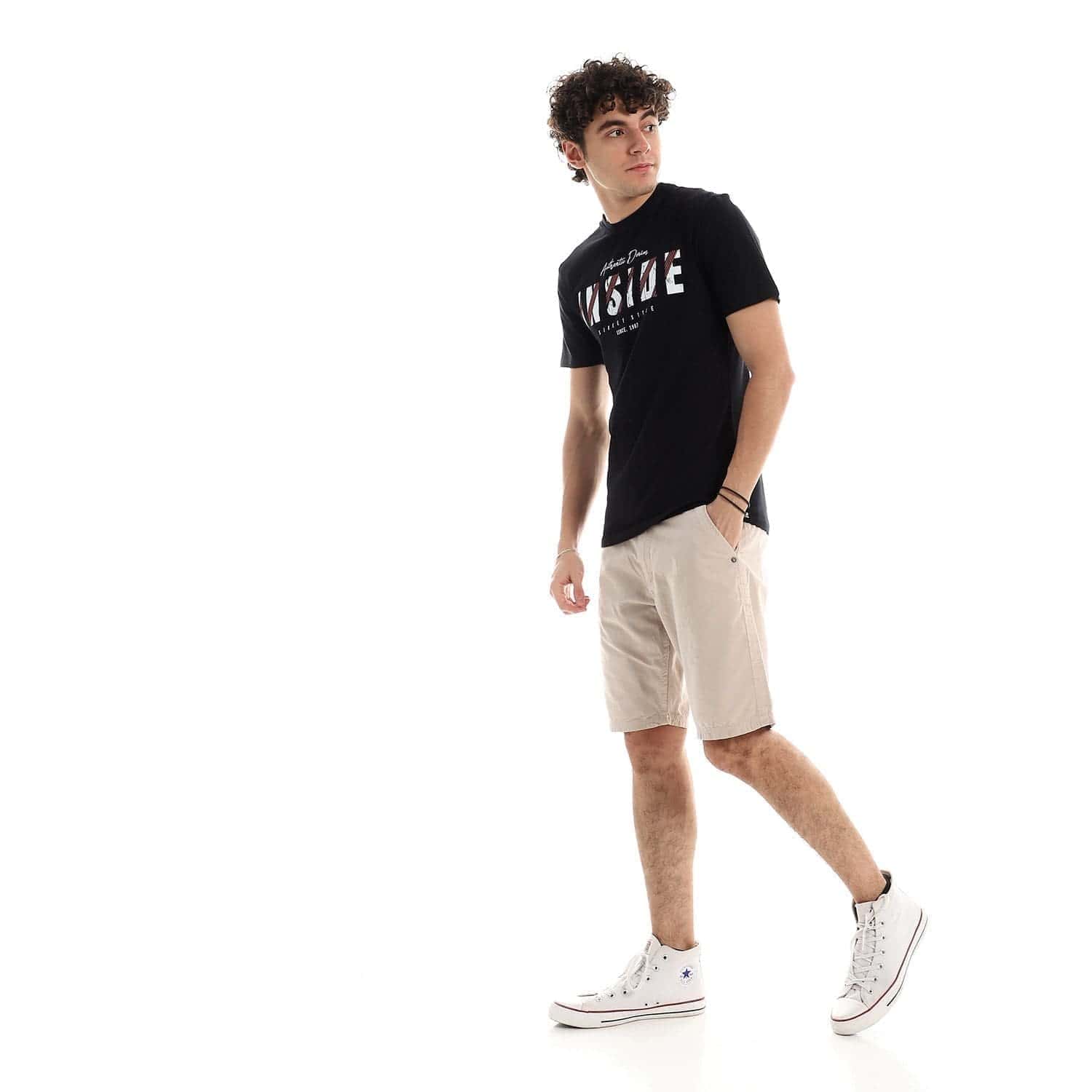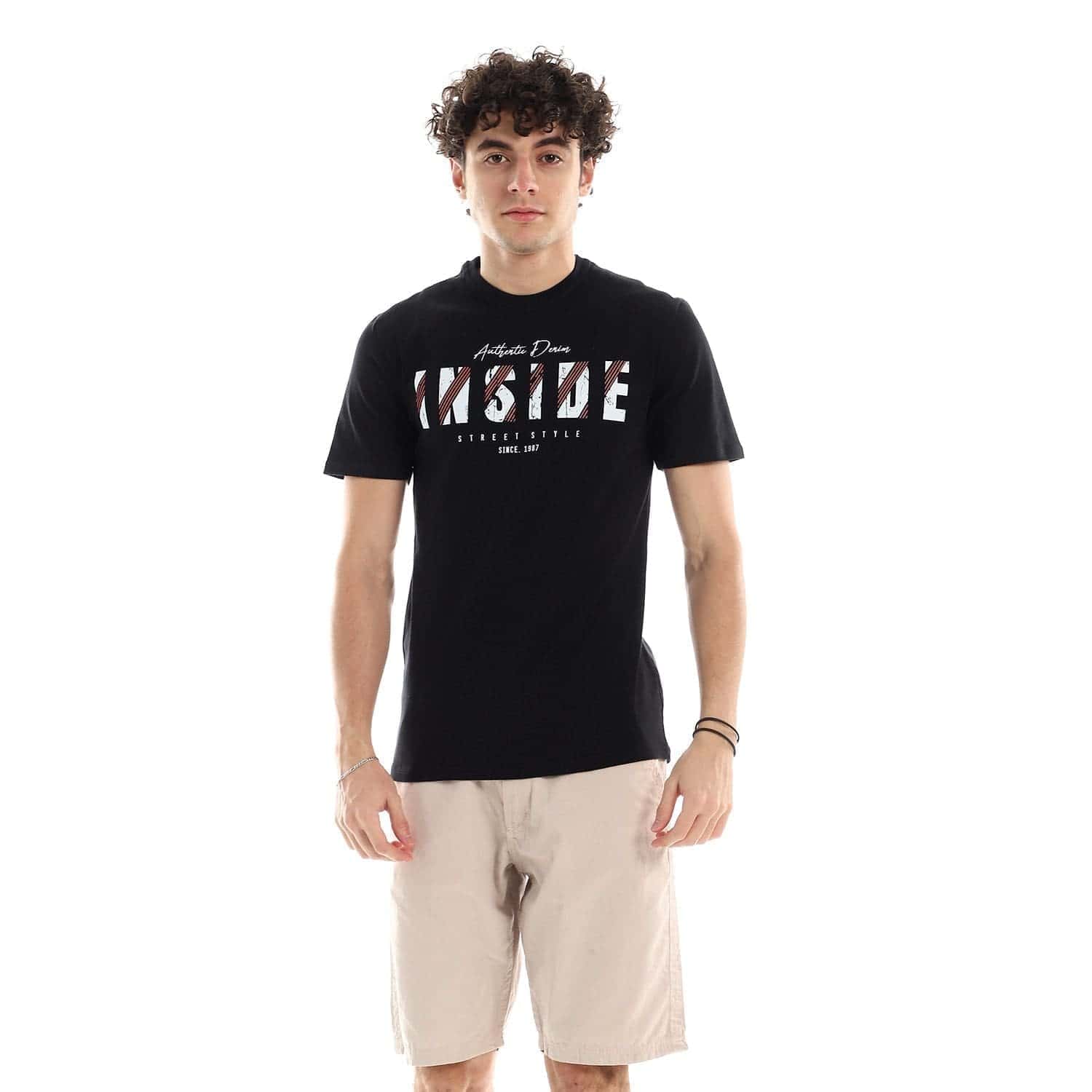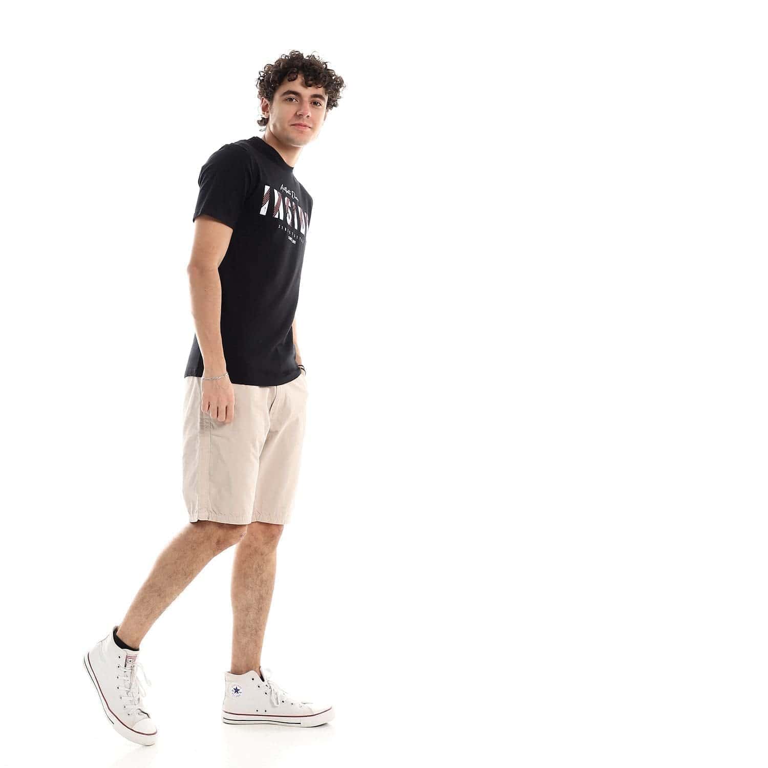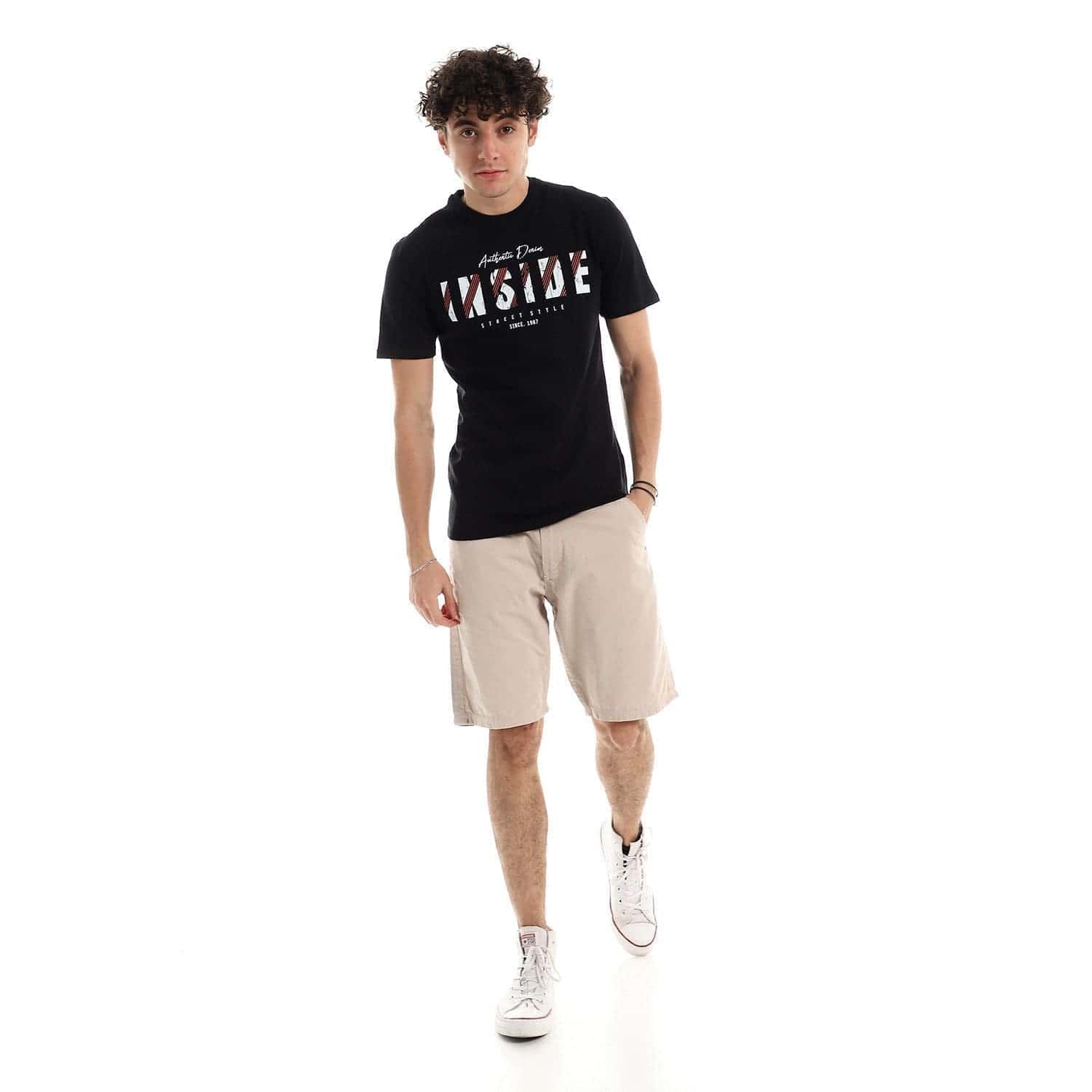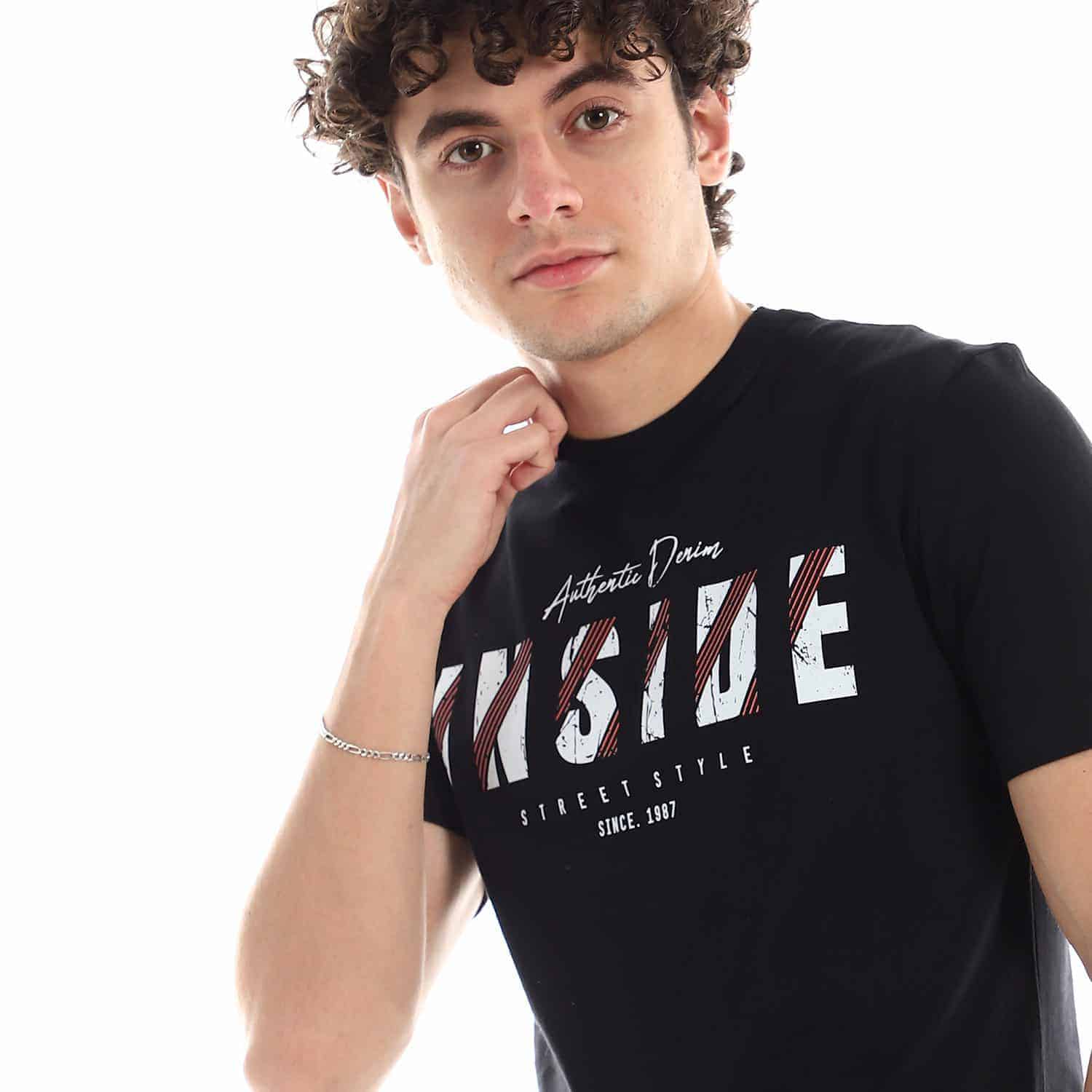 تيشرت رجالي نص كم حوض قطن – اسود