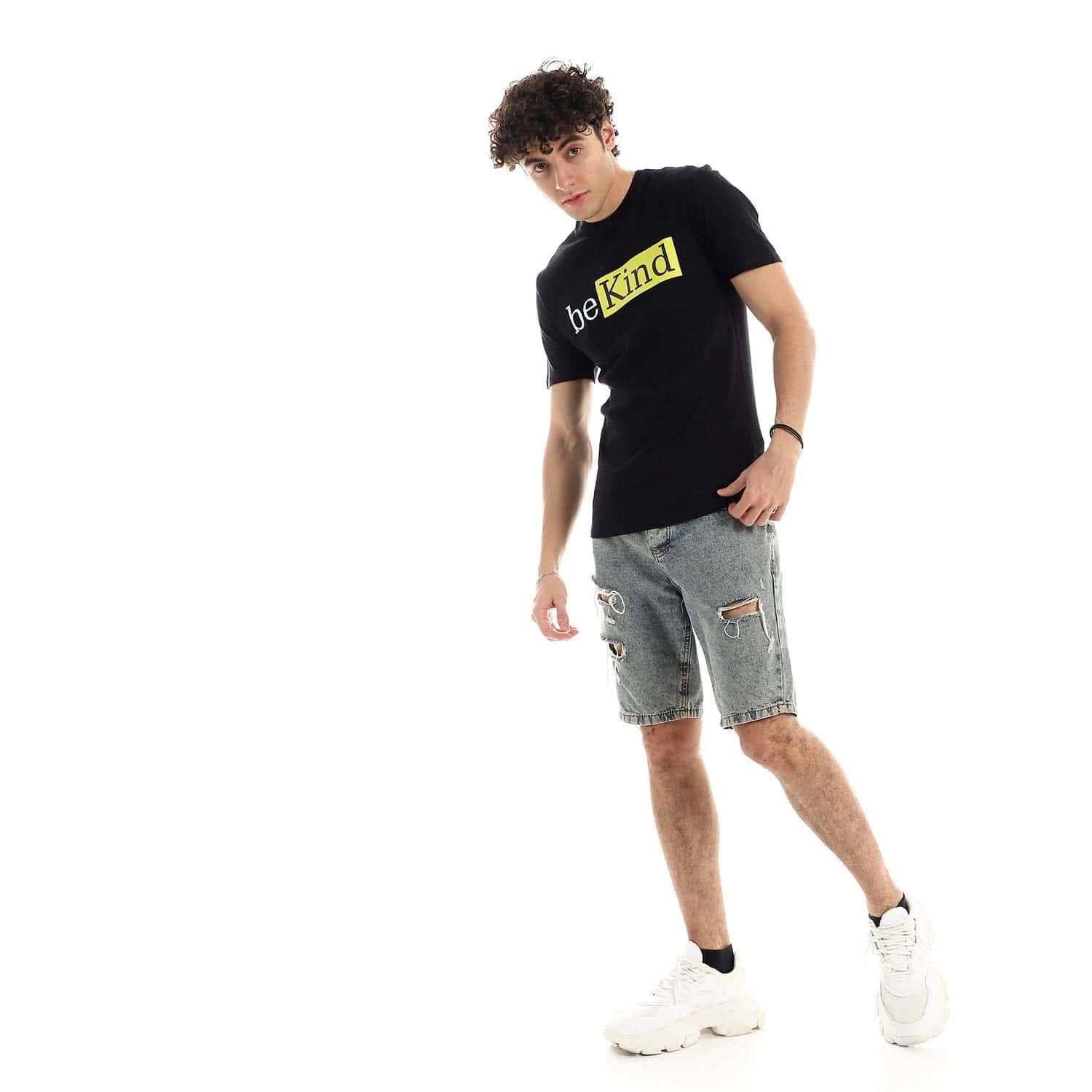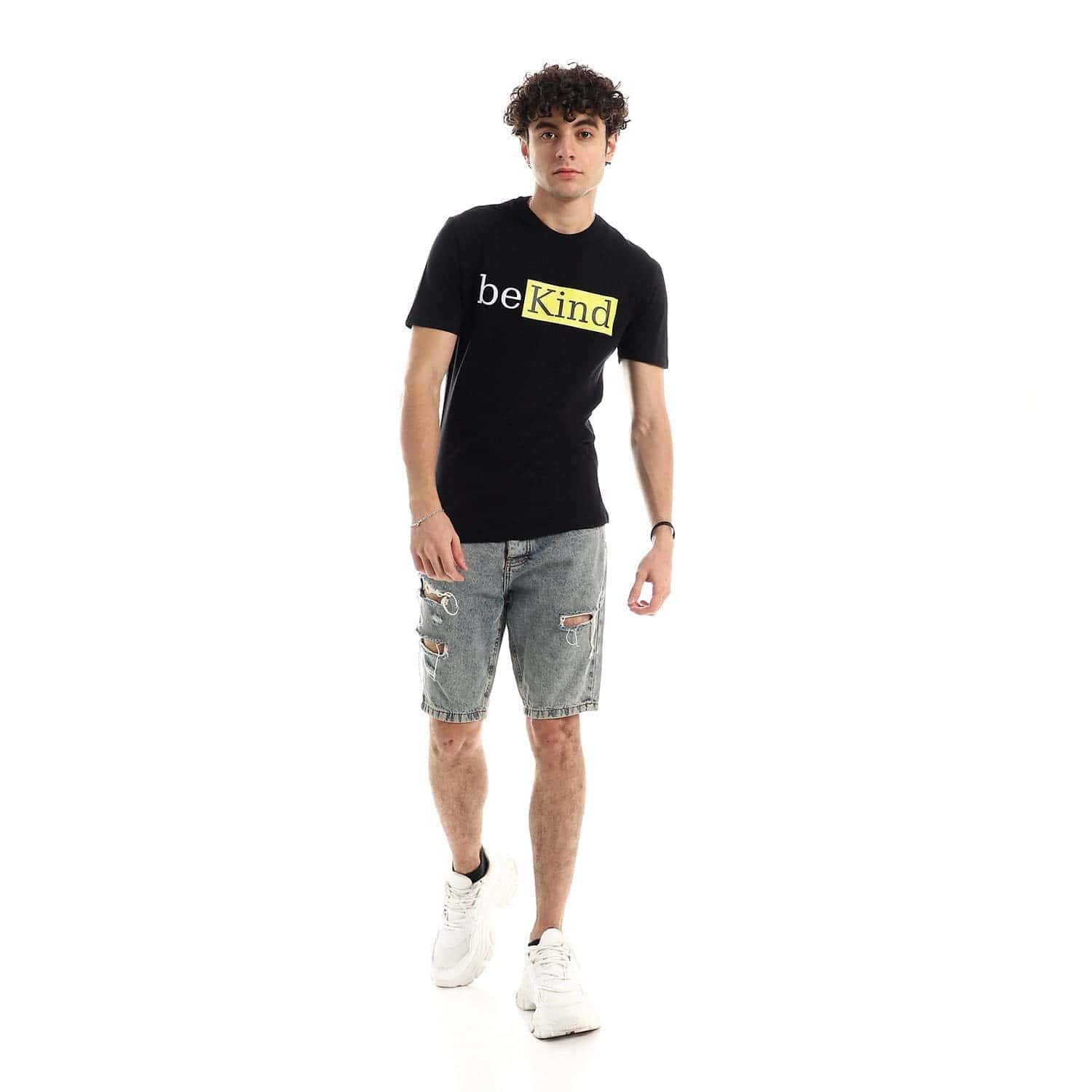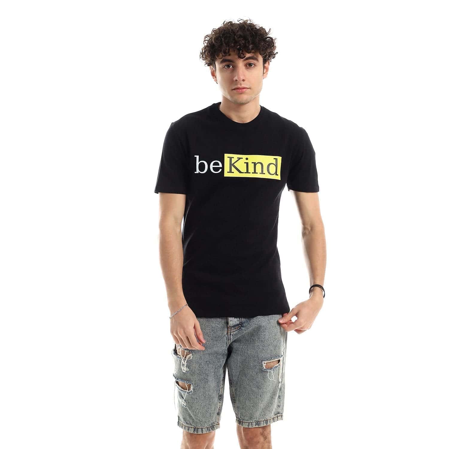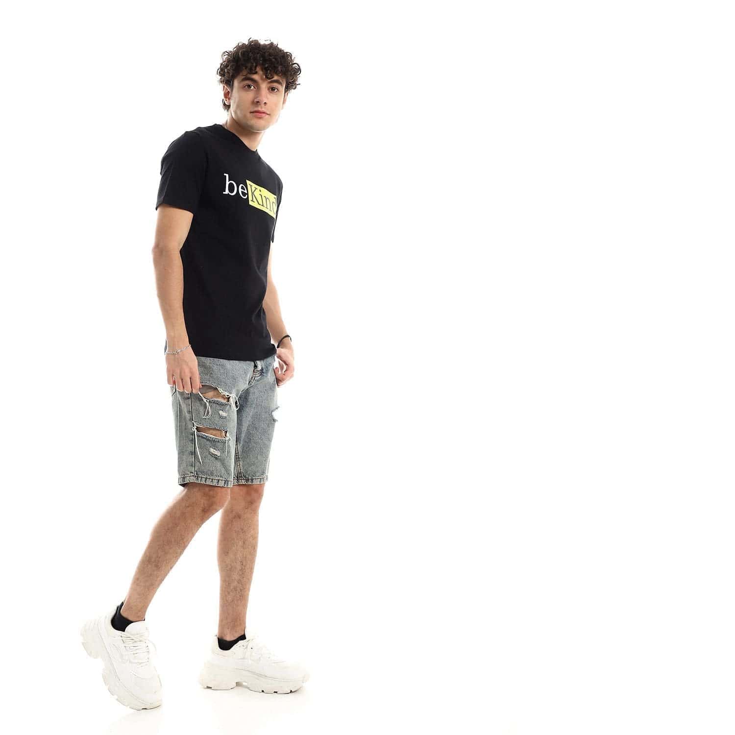 تيشرت رجالي نص كم حوض قطن – اسود