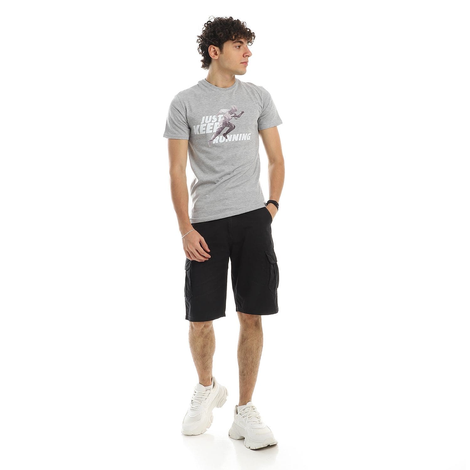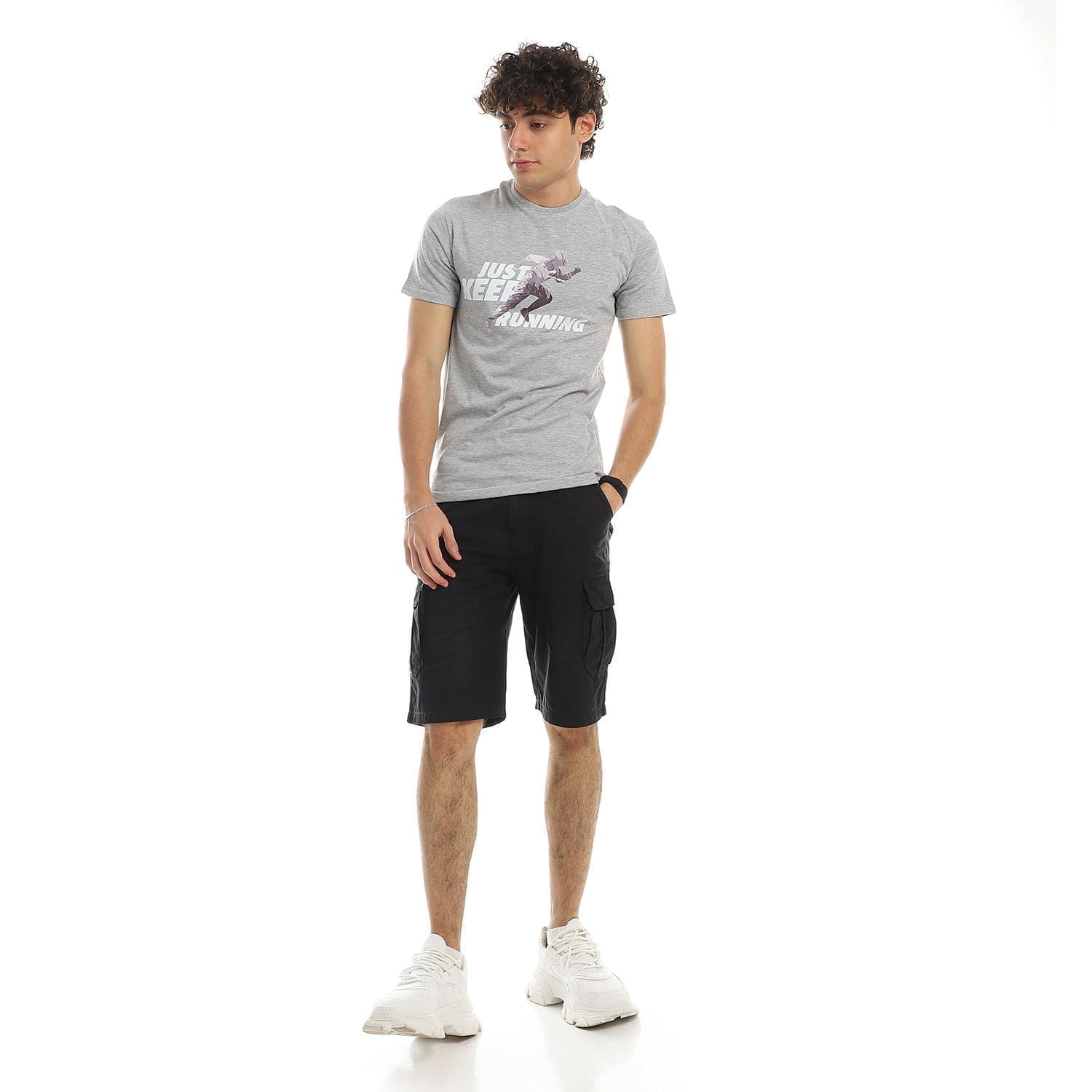تيشرت رجالي نص كم حوض قطن – رصاصي