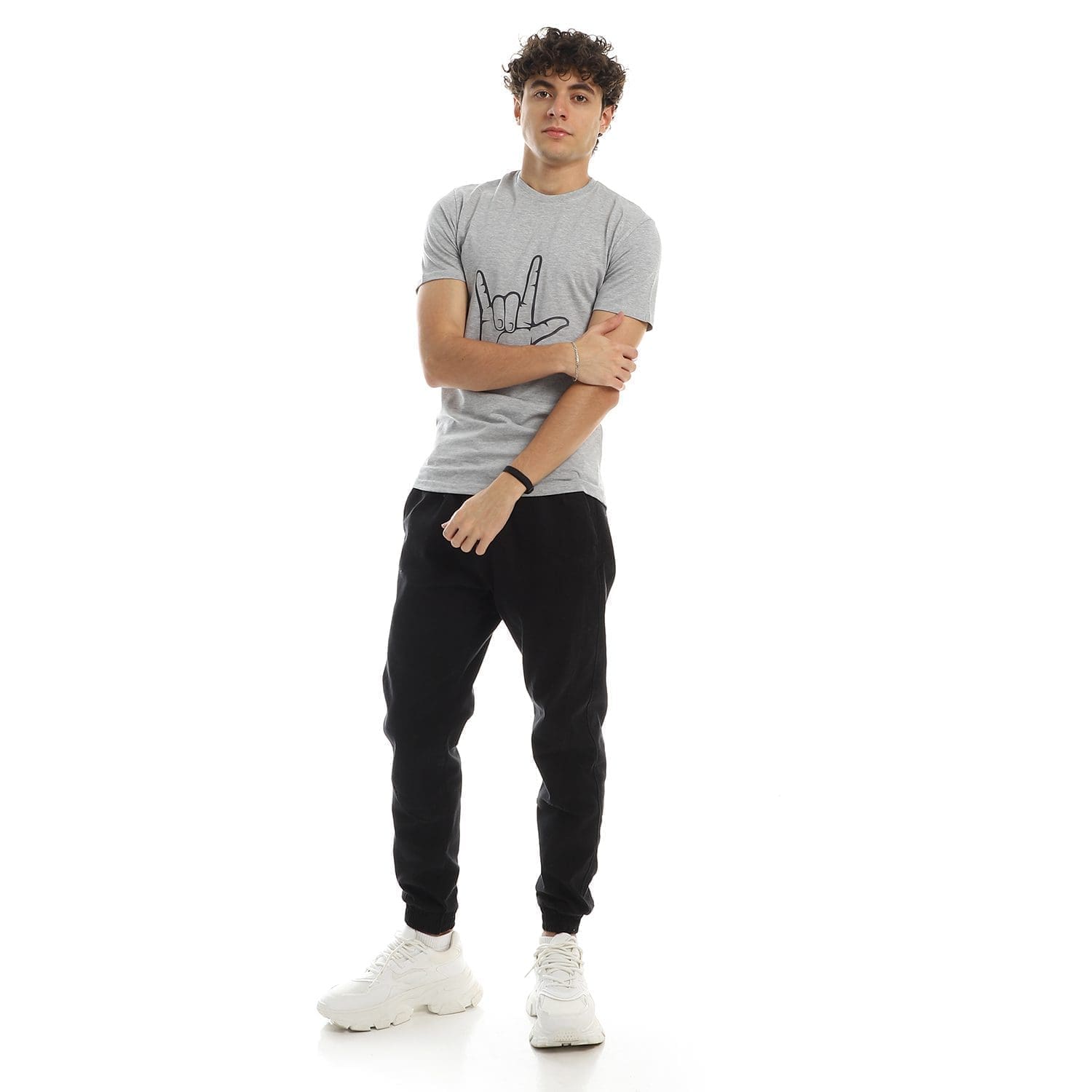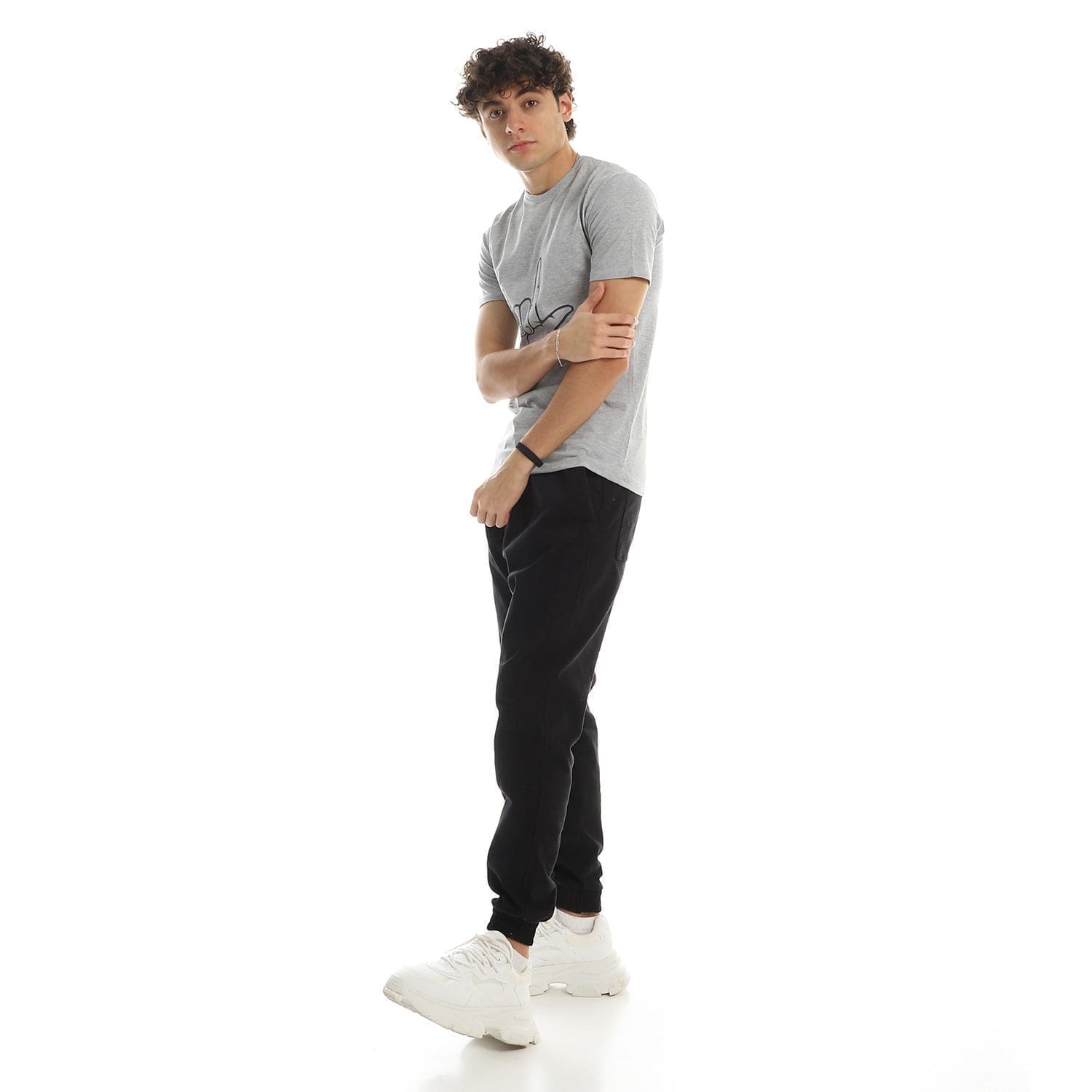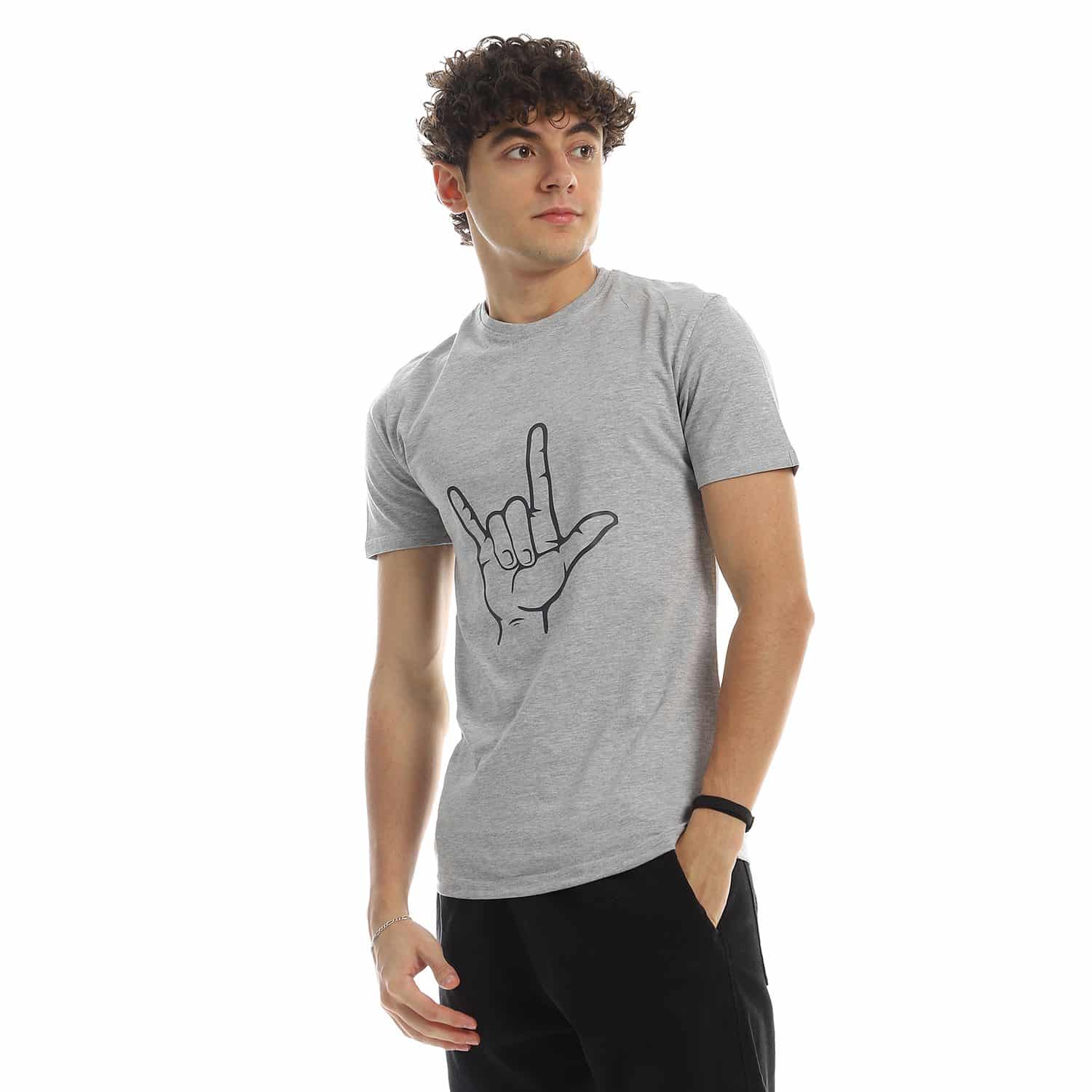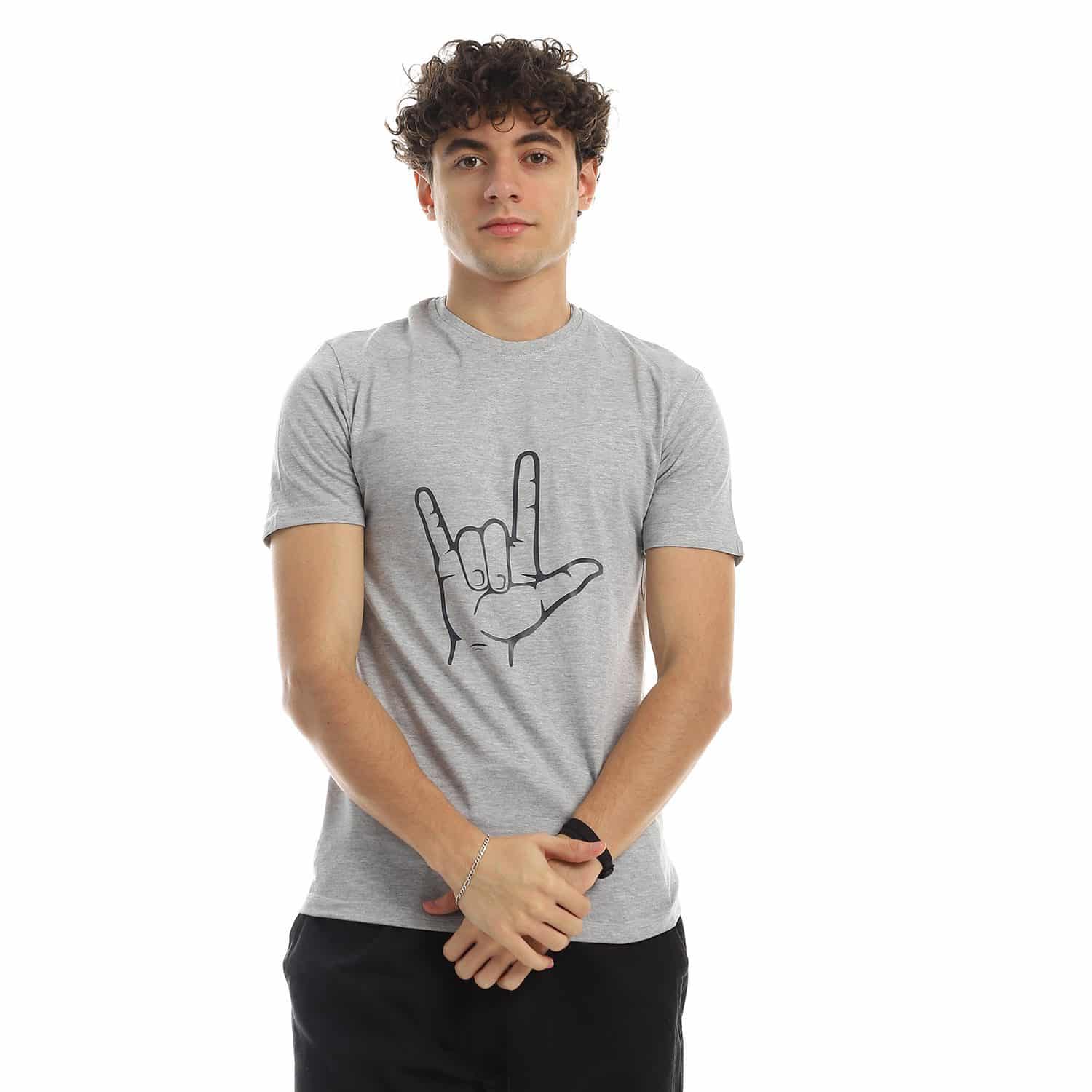 تيشرت رجالي نص كم حوض قطن – رصاصي