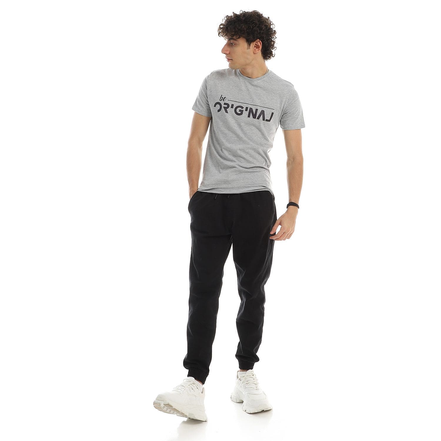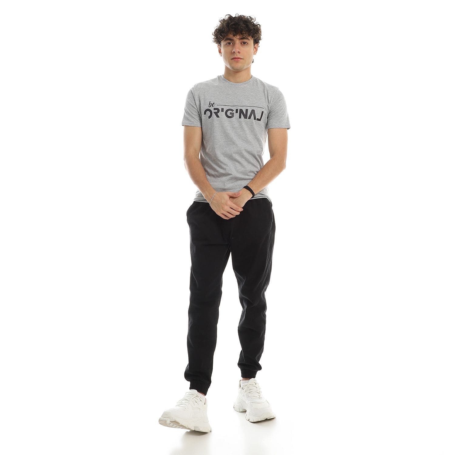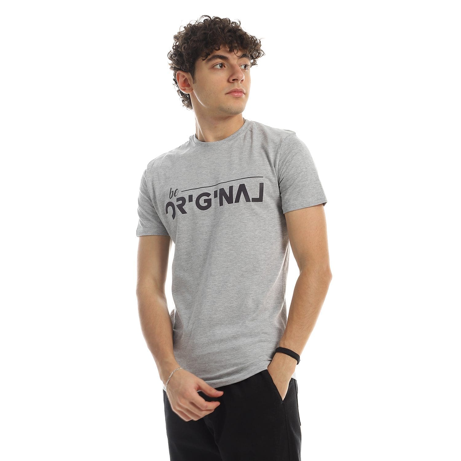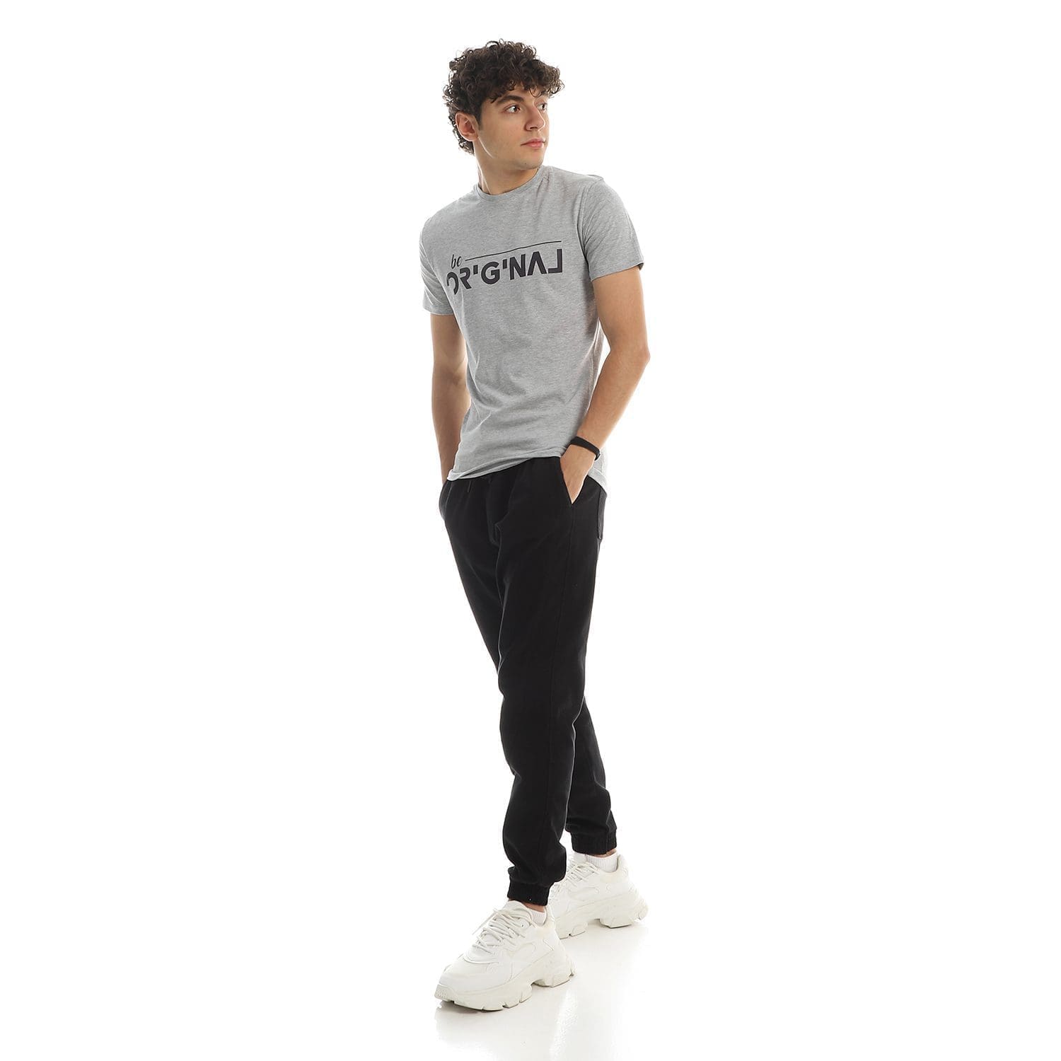 تيشرت رجالي نص كم حوض قطن – رصاصي
