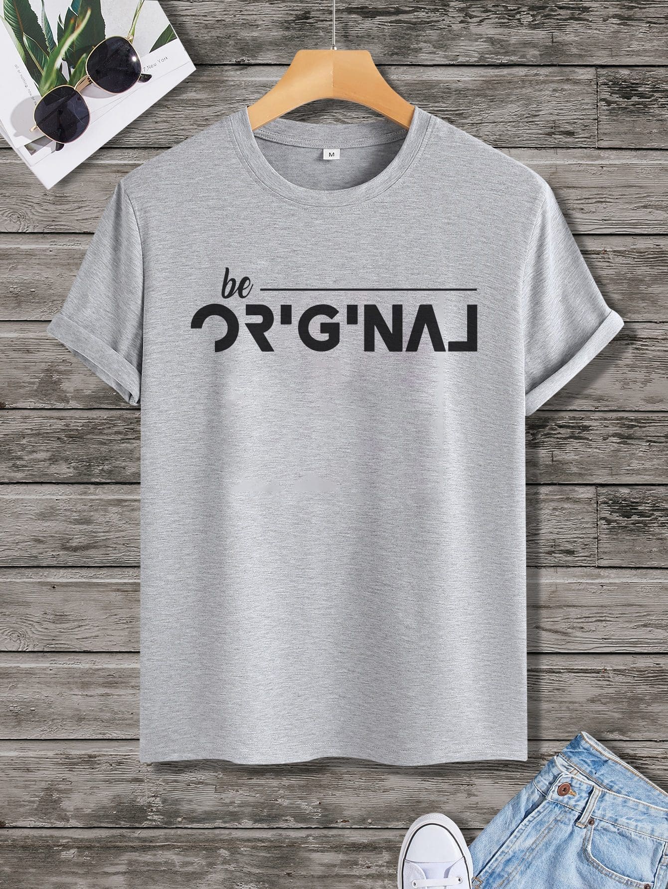 تيشرت رجالي نص كم حوض قطن – رصاصي