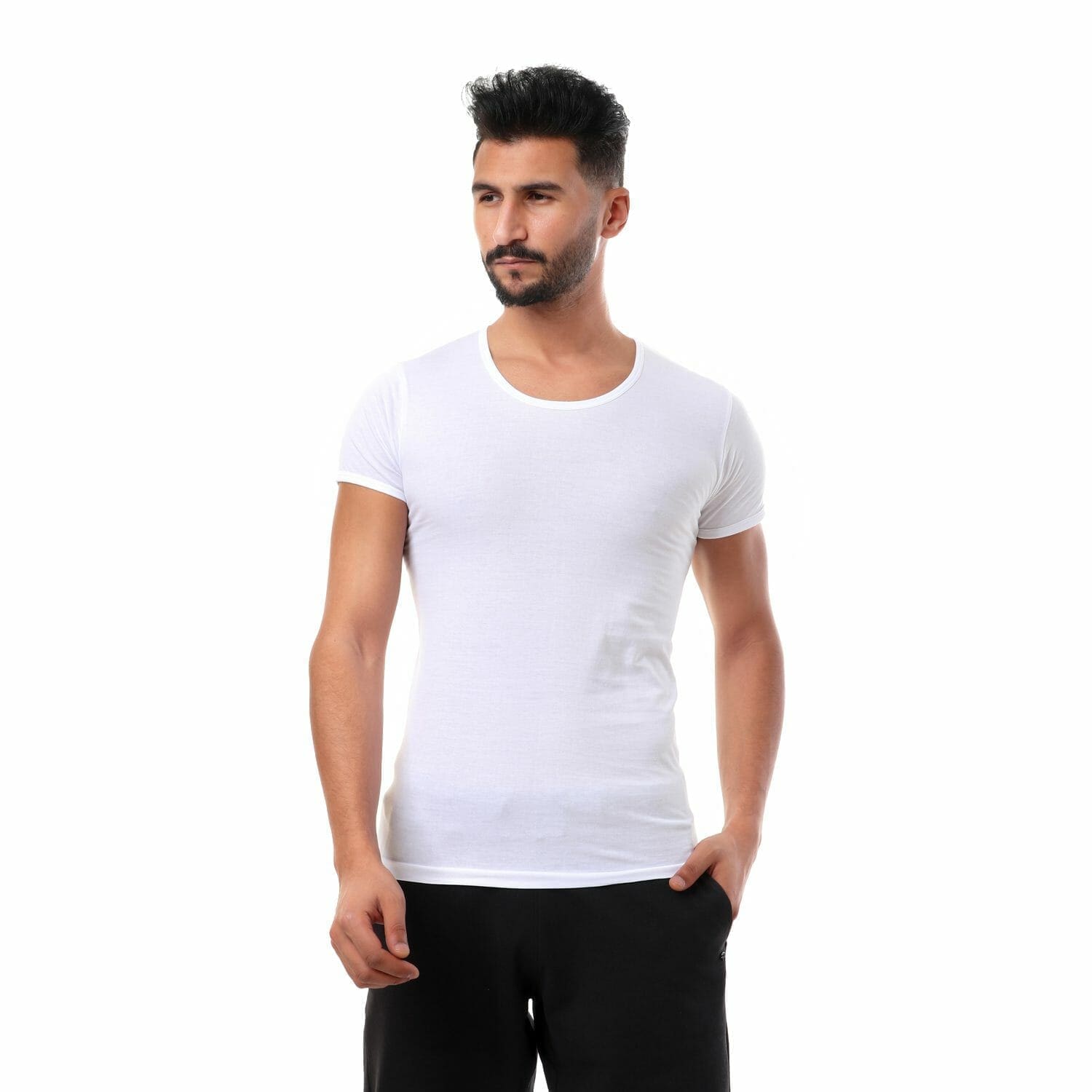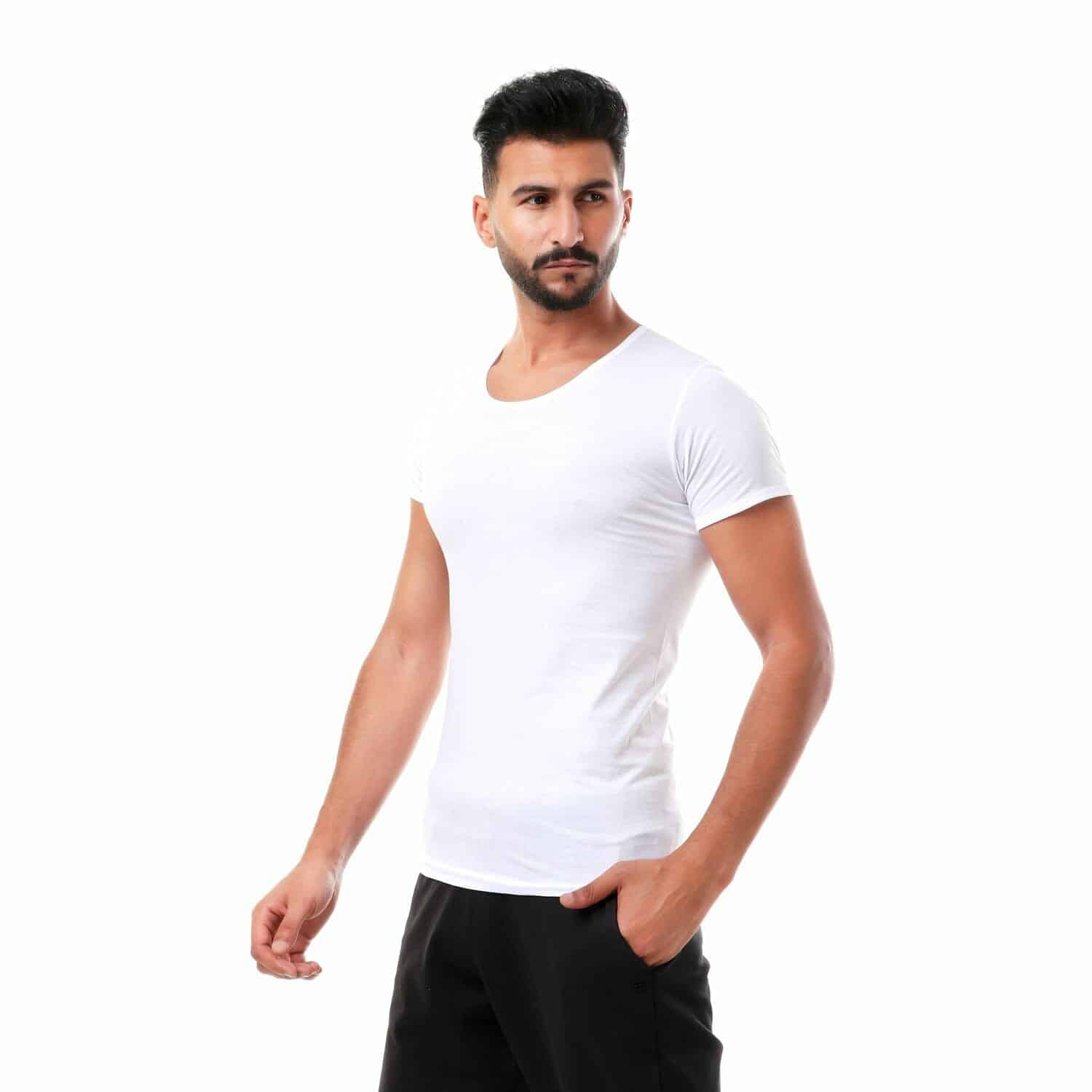 مجموعه من (2) – نصف كم ممشط 100% قطن صافي – ابيض