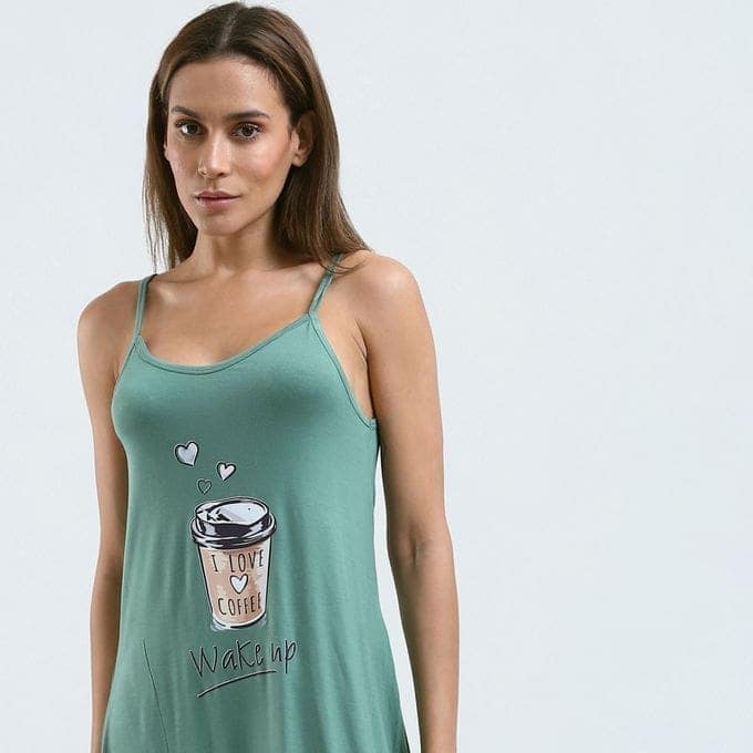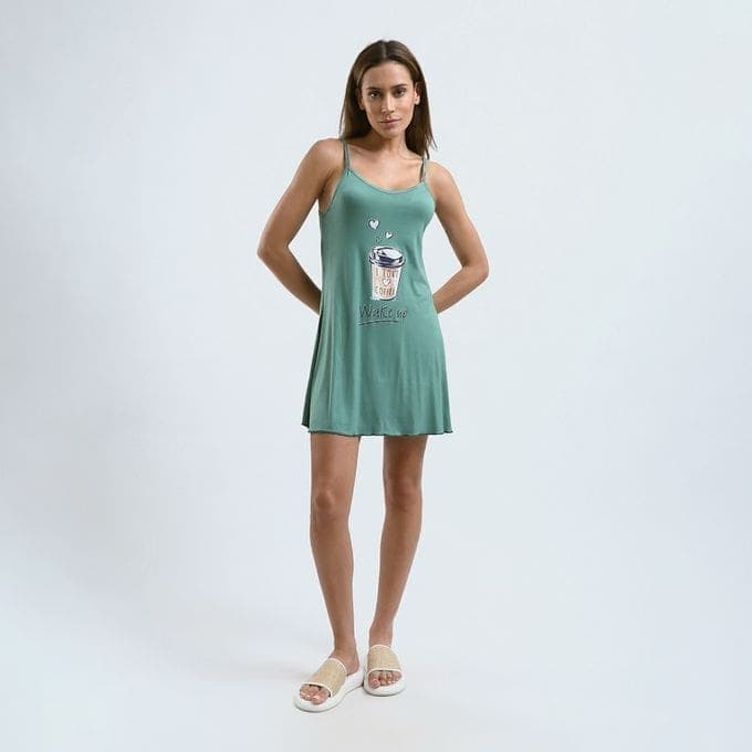 نايت شيرت قطن حماله رفيعه استريتش بطبعه – مينت جرين