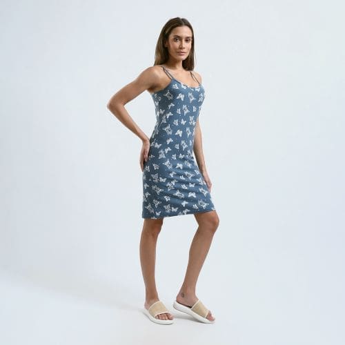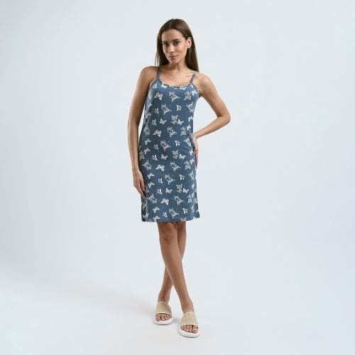 نايت شيرت قطن حماله رفيعه استريتش بطبعه -ازرق