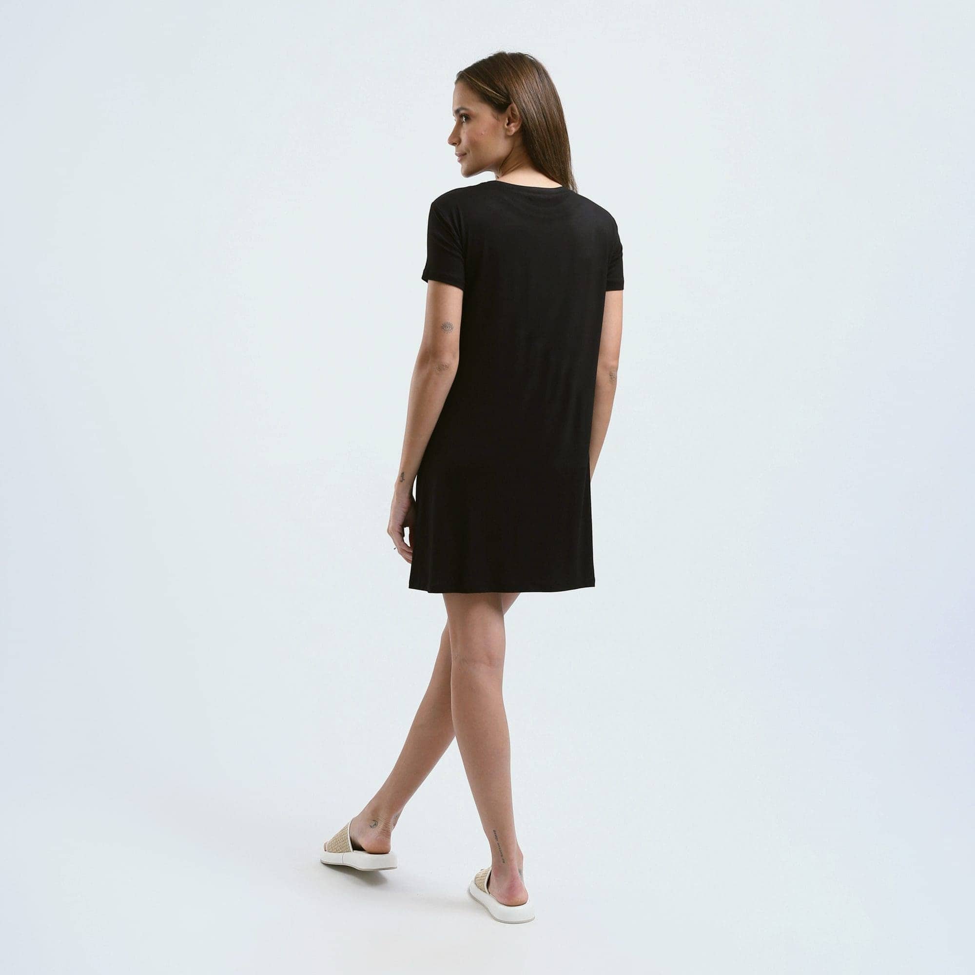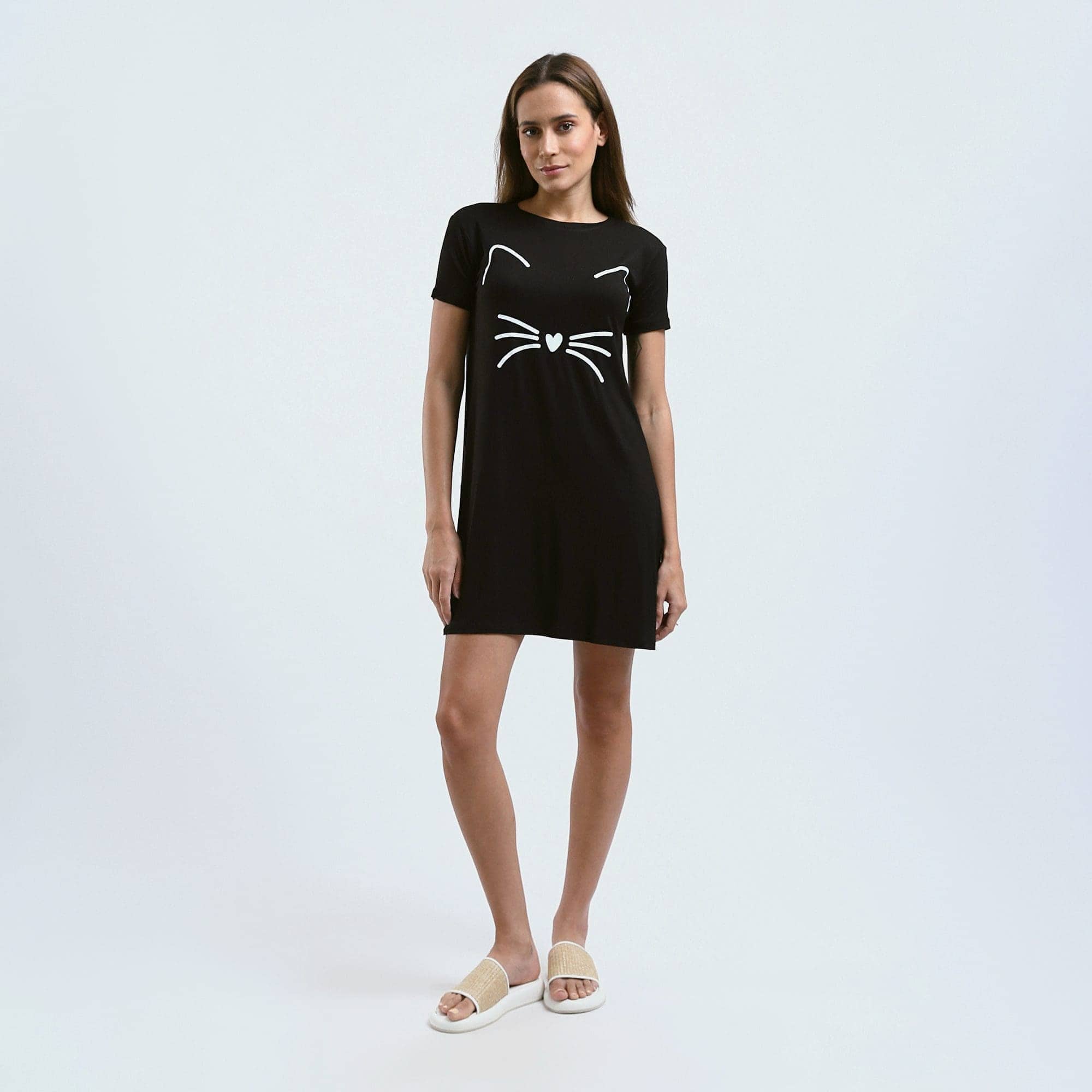 نايت شيرت قطن نص كم استريتش بطبعه -اسود