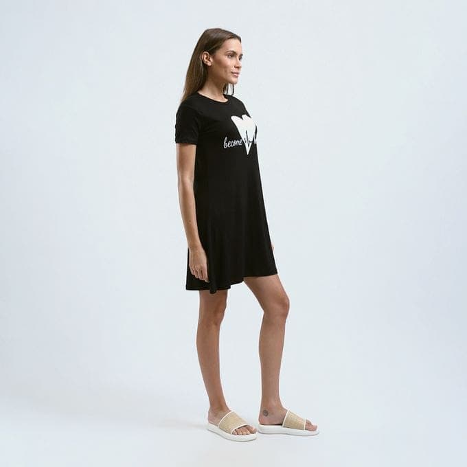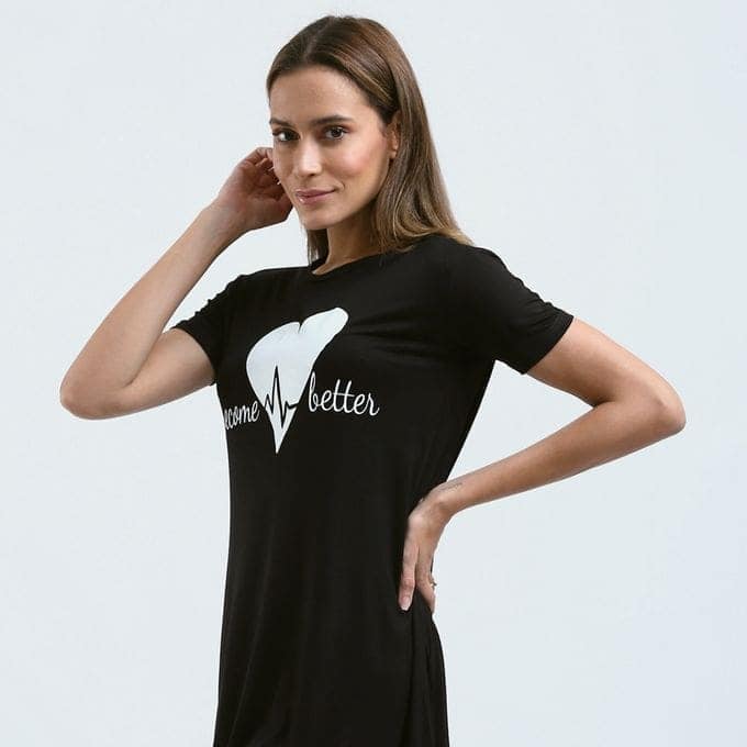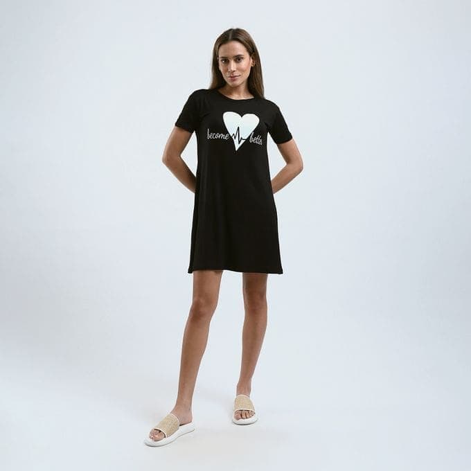 نايت شيرت قطن نص كم استريتش بطبعه -اسود